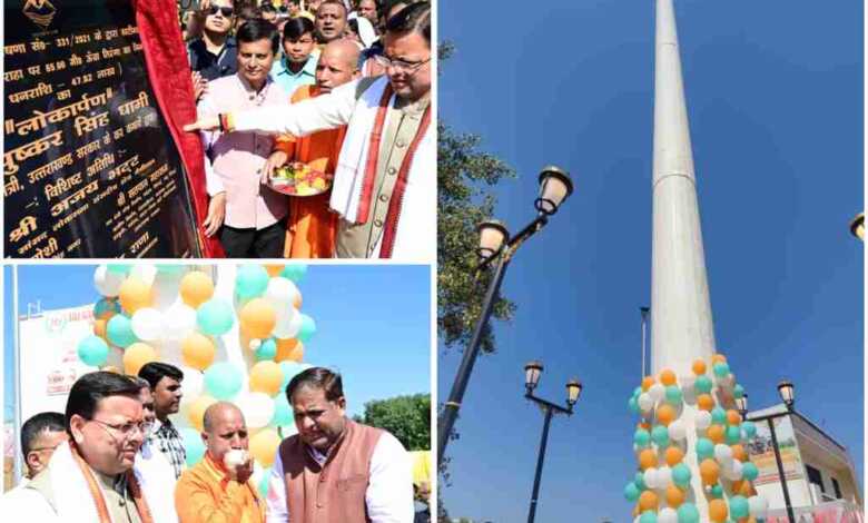 मुख्यमंत्री पुष्कर सिंह धामी ने कंजाबाग तिराहा खटीमा में मुख्यमंत्री घोषणा के अंतर्गत कार्यदायी संस्था लघु सिंचाई विभाग द्वारा 47.42 लाख की लागत से स्थापित किए गए 215 फीट ऊँचे राष्ट्रीय ध्वज का विधिवत पूजा अर्चना कर फीता काटकर व ध्वजारोहण कर लोकार्पण किया।