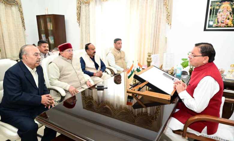 इस दौरान राज्य सभा मुख्यमंत्री पुष्कर सिंह धामी से रविवार को मुख्यमंत्री आवास में बार एसोसिएशन देहरादून के प्रतिनिधि मंडल ने भेंट की।