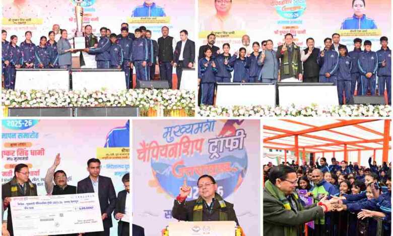 मुख्यमंत्री पुष्कर सिंह धामी ने बुधवार को ननूरखेड़ा, देहरादून में मुख्यमंत्री चैम्पियनशिप ट्रॉफी 2025-26 के समापन समारोह में प्रतिभाग किया। इस अवसर पर मुख्यमंत्री ने देहरादून जनपद को विजेता ट्रॉफी एवं 05 लाख रुपये का चेक प्रदान किया।