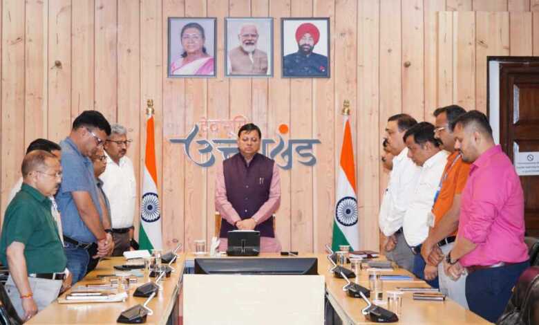 मुख्यमंत्री पुष्कर सिंह धामी ने शुक्रवार को मुख्यमंत्री आवास में उच्च अधिकारियों के साथ बैठक के दौरान गुजरात के अहमदाबाद में हुए विमान हादसे में जान गंवाने वालों को श्रद्धांजलि दी। उन्होंने मौन रखकर दिवंगत आत्माओं की शांति के लिए प्रार्थना की एवं शोकाकुल परिजनों के प्रति अपनी संवेदनाएं भी व्यक्ति की।