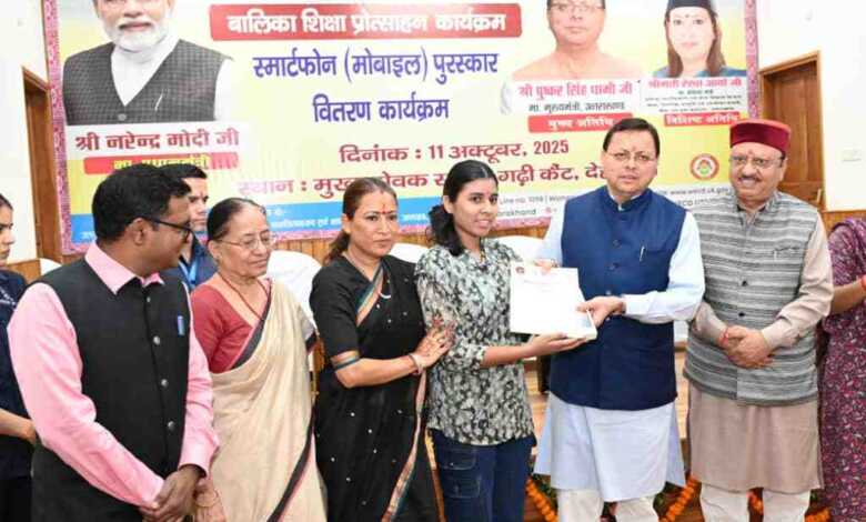 मुख्यमंत्री पुष्कर सिंह धामी ने शनिवार को मुख्यमंत्री कैम्प कार्यालय स्थित मुख्य सेवक सदन में अंतरराष्ट्रीय बालिका दिवस के अवसर पर आयोजित बालिका शिक्षा प्रोत्साहन कार्यक्रम में प्रतिभाग किया। महिला सशक्तिकरण एवं बाल विकास विभाग द्वारा आयोजित इस कार्यक्रम में 326 मेधावी बालिकाओं को स्मार्टफोन प्रदान किए गए। जनपद स्तर पर हाईस्कूल एवं इंटरमीडिएट की परीक्षा के प्रथम तीन टॉपर बालिकाओं एवं विकासखण्ड स्तर पर टॉपर बालिकाओं को मुख्यमंत्री द्वारा पुरस्कृत किया गया।