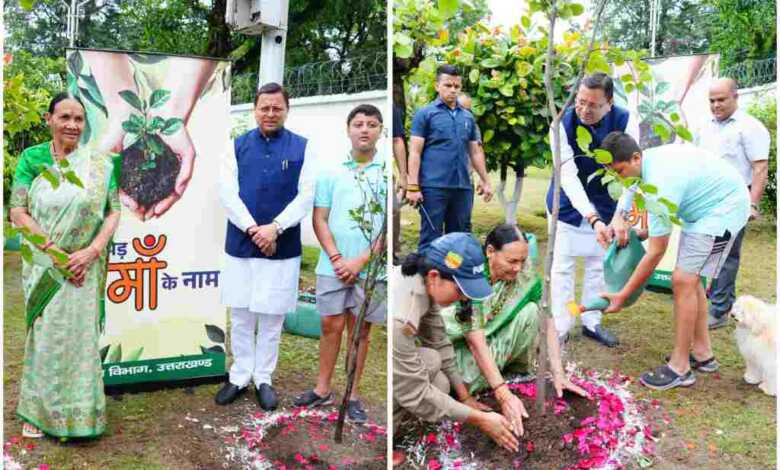 मुख्यमंत्री पुष्कर सिंह धामी ने शनिवार को एक पेड़ मां के नाम अभियान के तहत अपनी माताजी श्रीमती बिशना देवी के साथ पौधारोपण किया। मुख्यमंत्री के सुपुत्र दिवाकर ने भी इस अवसर पर पौधा लगाया। इस पहल का उद्देश्य प्रत्येक व्यक्ति को अपनी माँ के सम्मान में एक पेड़ लगाने के लिए प्रेरित करना है, ताकि भावनात्मक जुड़ाव के माध्यम से पर्यावरण संरक्षण को जन-आंदोलन बनाया जा सके।