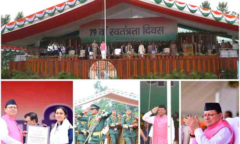मुख्यमंत्री पुष्कर सिंह धामी ने 79वें स्वतंत्रता दिवस के अवसर पर परेड ग्राउंड देहरादून में राज्य के मुख्य कार्यक्रम में ध्वजारोहण किया। इस अवसर पर मुख्यमंत्री ने स्वतंत्रता संग्राम सेनानियों के परिजनों को सम्मानित किया एवं फोटो प्रदर्शनी का अवलोकन भी किया।