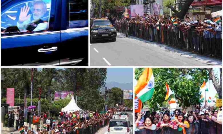 प्रधानमंत्री नरेंद्र मोदी ने भी हाथ जोड़कर और हाथ हिलाकर लोगों का अभिवादन स्वीकार किया। जनता के इस अपार प्रेम और समर्थन से वे बेहद प्रसन्न और उत्साहित दिखाई दिए।