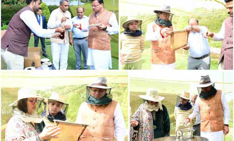 मुख्यमंत्री आवास परिसर में मंगलवार को शहद निष्कासन कार्य किया गया। पहले चरण में 60 किलोग्राम शहद निकाला किया गया। मुख्यमंत्री पुष्कर सिंह धामी ने उद्यान विभाग के अधिकारियों को निर्देश दिये कि मुख्यमंत्री आवास परिसर एवं आस-पास के क्षेत्र में 3-बी गार्डन (बी- फ्रेंडली गार्डन, बटर – फ्लाई फ्रेंडली गार्डन एवं बर्ड फ्रेंडली गार्डन) विकसित करने की दिशा में कार्य किये जाएं।