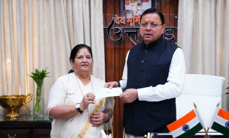 मुख्यमंत्री राहत कोष के लिए पर्वतारोही बछेंद्री पाल ने प्रदान किया 10 लाख का चेक