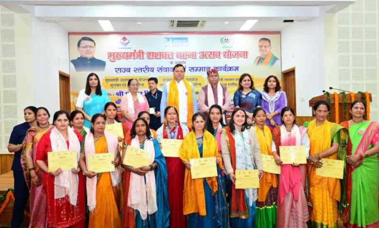 मुख्यमंत्री पुष्कर सिंह धामी ने सोमवार को मुख्यमंत्री आवास स्थित मुख्य सेवक सदन में मुख्यमंत्री सशक्त बहना उत्सव योजना के अन्तर्गत सराहनीय कार्य करने वाले महिला स्वयं सहायता समूहों को सम्मानित किया और उनसे संवाद भी किया। इस अवसर पर मुख्यमंत्री ने मुख्यमंत्री उद्यमशाला योजना का शुभंकर एवं लोगो लॉन्च किया तथा हाउस ऑफ हिमालयाज के नये उत्पाद एवं वेबसाइट का लोकार्पण किया।